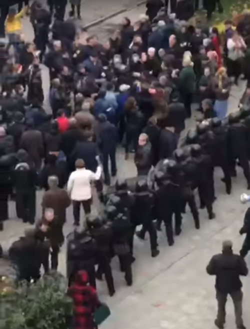 20 октября 2015 – ред.) не выбирали и против очередного назначения мэра, не желающего общаться с жителями. Мурат Кулиев выдвинулся к ступеням, ведущим в здание, и снова предложил Арсену Алакаеву спуститься. После этого вход в администрацию блокировала цепь сотрудников Росгвардии в масках и шлемах с металлическими щитами и дубинками, которых встретили криками: «Позор, позор!». Другая группа силовиков захватила одного из членов «Вольного Аула» Руслана Назранова и попыталась схватить Мурата Кулиева. Однако люди смогли отстоять его и увести подальше, а затем они вместе двинулись в сторону Дома правительства КБР.