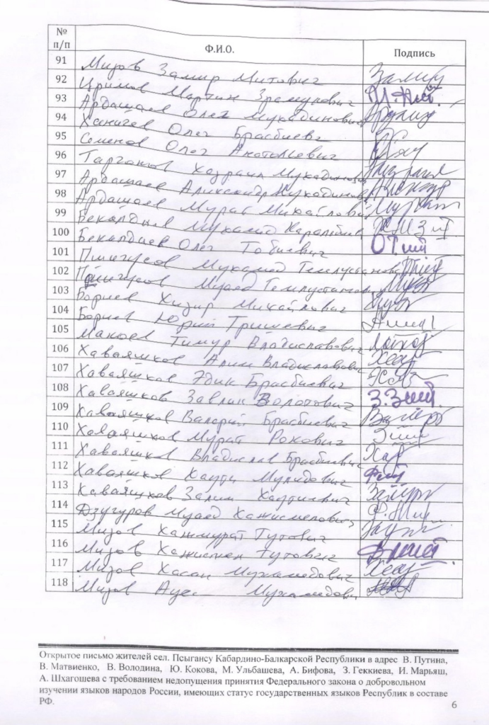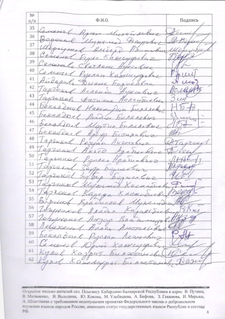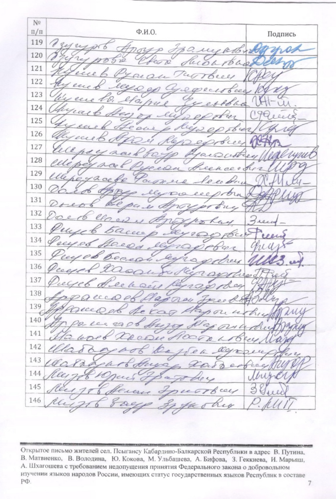 Мы, жители старинного адыгского села Псыгансу Кабардино- Балкарской республики, с возмущением и негодованием восприняли принятие в первом чтении Государственной Думой Федерального собрания РФ законопроекта, устанавливающего принцип добровольного изучения в школах кабардинского и балкарского языков, имеющих статус государственных наравне с русским языком.
