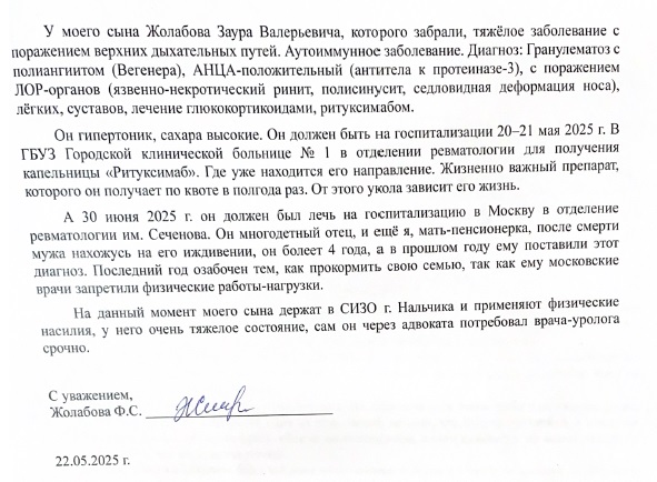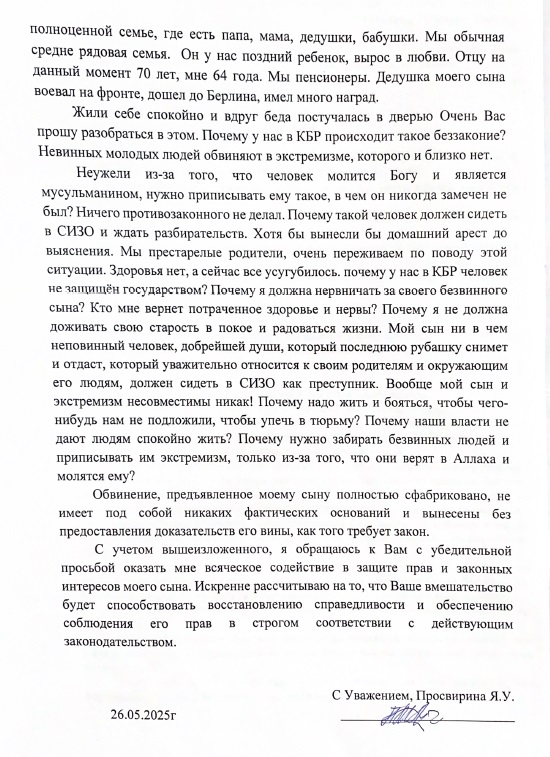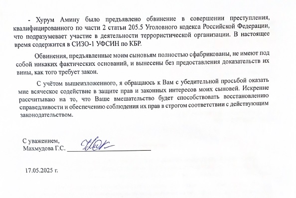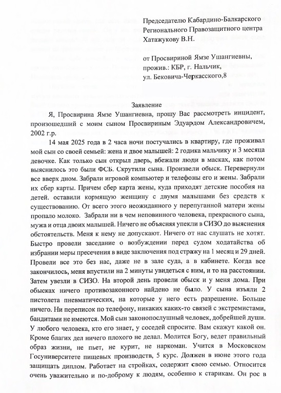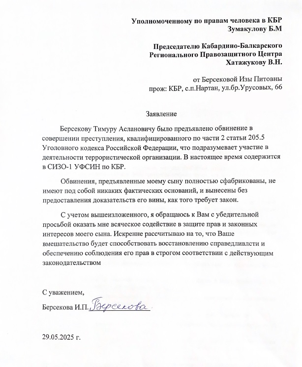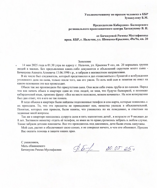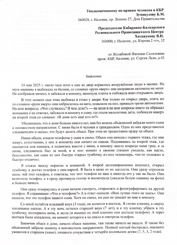 Данные жалобы также были направлены Уполномоченному по правам человека в Кабардино-Балкарской Республике Борису Зумакулову.