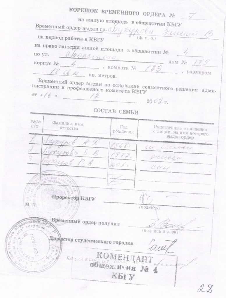 У ниже подписывающихся жителей, у кого-то есть временные ордера на жилую площадь в общ. КБГУ с 2001 года, у всех нас есть копии договора найма жилого помещения со сроком или бессрочные, в которых истекли сроки в 2021 году. Есть справки об инвалидности. Среди нас есть жительница, которая относиться к категории детей сирот и детей, оставшихся без попечения родителей, малоимущие и матери одиночки, которые воспитывают детей одна. У многих имеется согласие на опекунства ребенка.