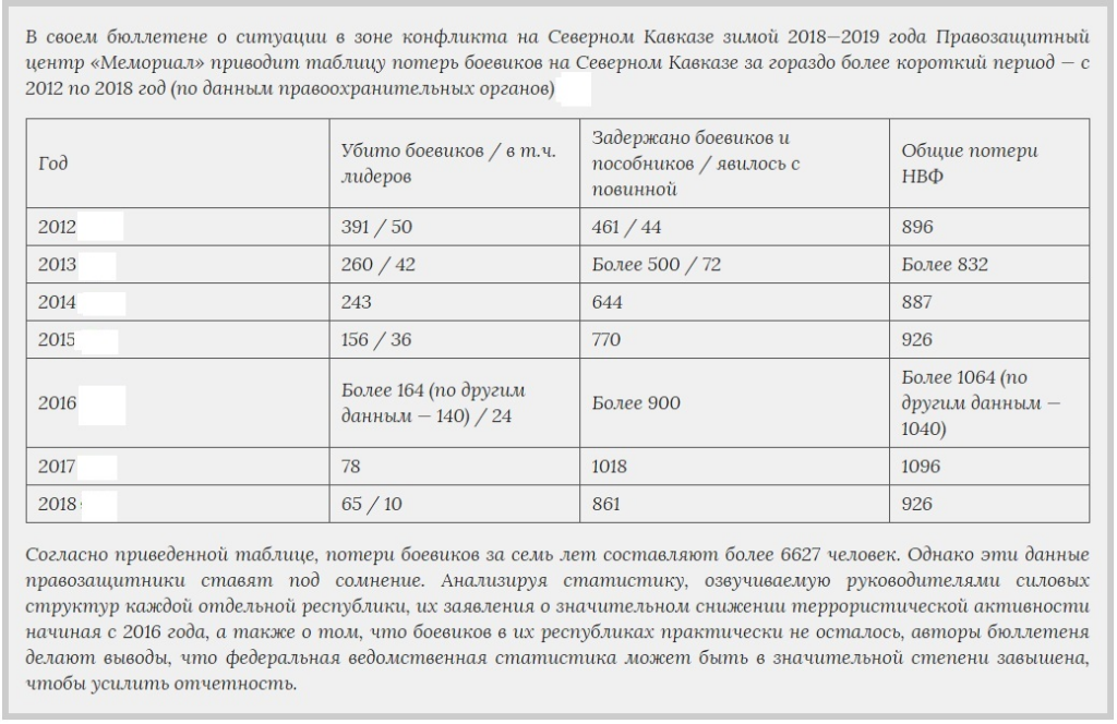 - «МВД: в 2012 году на Северном Кавказе был убит 391 боевик», Кавказский узел, 27 января 2013 г.↑