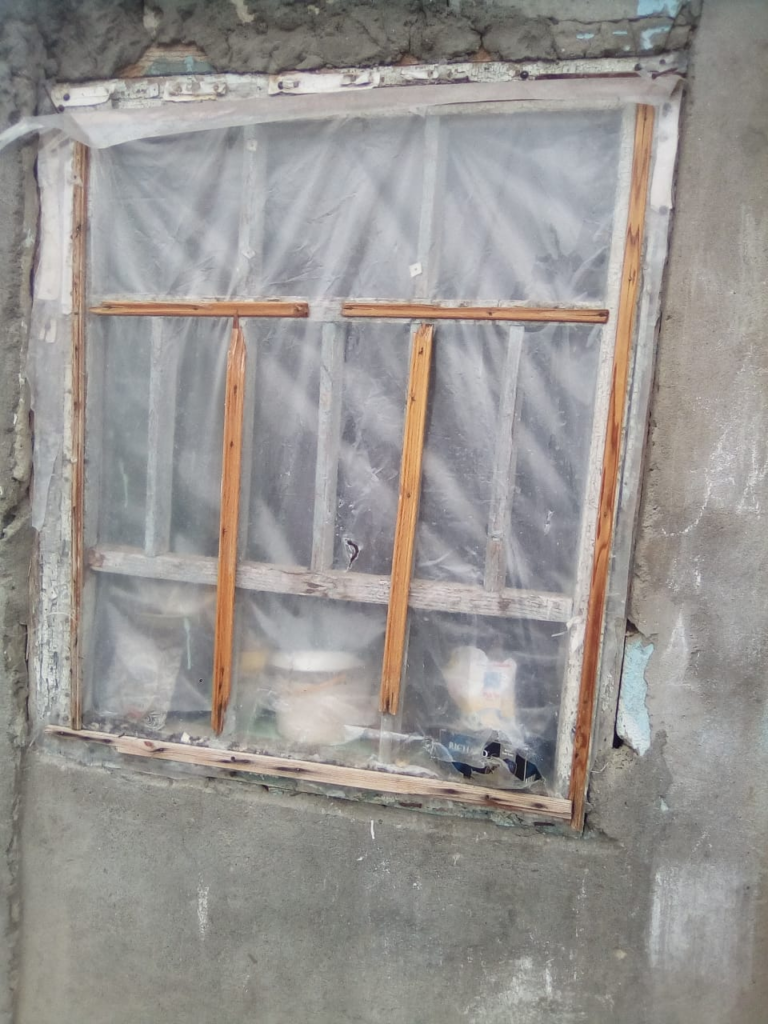 Живу я с детьми на 54 кв. метрах в старом саманном доме в с. Зольское, Зольского района КБР. Состояние дома ужасающее. Из четырех маленьких комнат (если можно их так назвать), только две отапливаются и то форсункой. В холодное время года восемь человек вынуждены ютиться в этих двух комнатах. Межкомнатные двери отсутствуют, так как стены прогнили и крепить не на что. Окна давно прогнили, я их обила целлофаном, но они не спасают от ветра, дождя и снега.