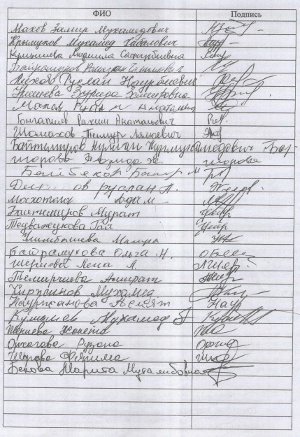 от жителей с.п. Совхозное, Зольского района КБР